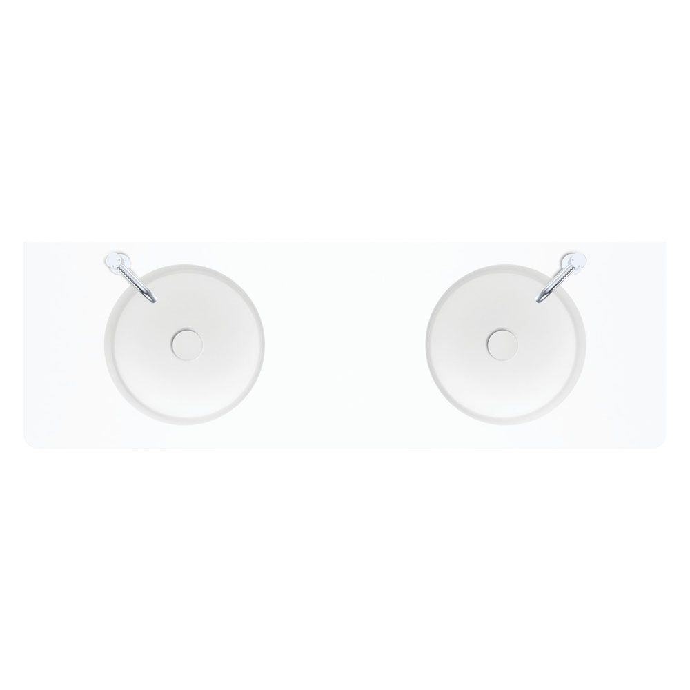 Encanto Solid Surface Wall Basin, Double Bowl, No Tap Hole 1400 x 450 x 135 mm